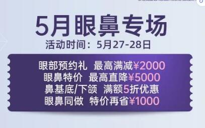 重庆华美5月眼鼻专场优惠即将开启~眼部整形提前预约可以至高享受满减2000元,趁着现在赶紧预约吧~活动时间:2022年5月27日—5月28日。