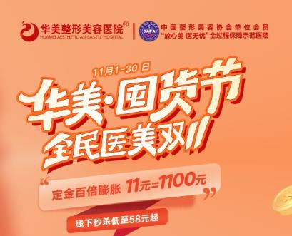 华美囤货节,全民医美双十一,乌鲁木齐华美双十一福利火爆来袭,定金百倍膨胀,11元抵1100元,线下秒杀低至58元起。